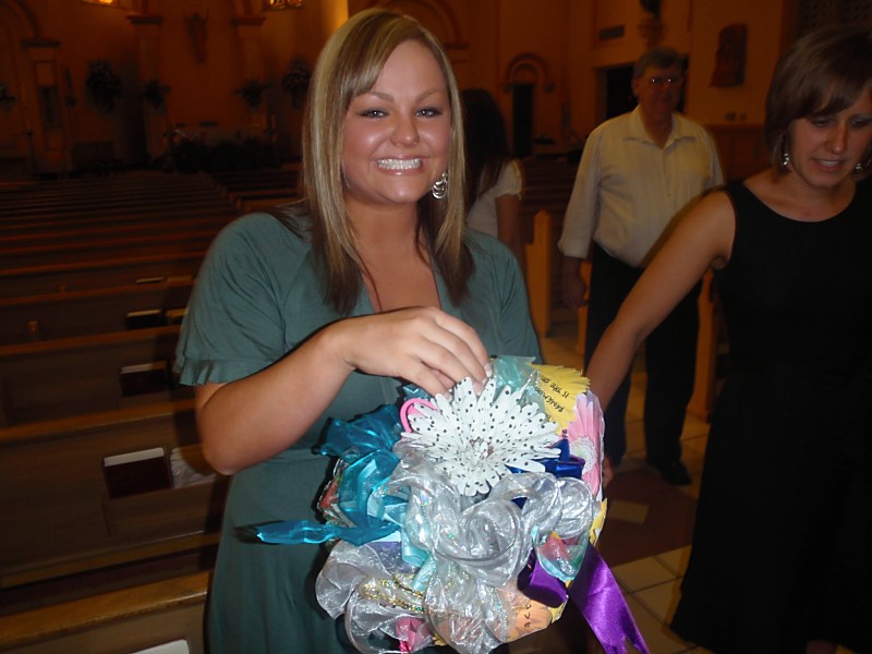 My BEAUTIFUL ribbon bouquet made from all ofthe ribbons from showers. Made by Andrea (of course)