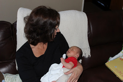 We left the hospital Friday morning (2/24) and we're shortly greeted with my mom and her husband's arrival. I was still an emotional, hormonal mess and cried about everything once we got home. Later that afternoon, Scott left to pick his mom up at the airport. Peyton had both his grandmother's (Grammy and Mimi) under one roof.